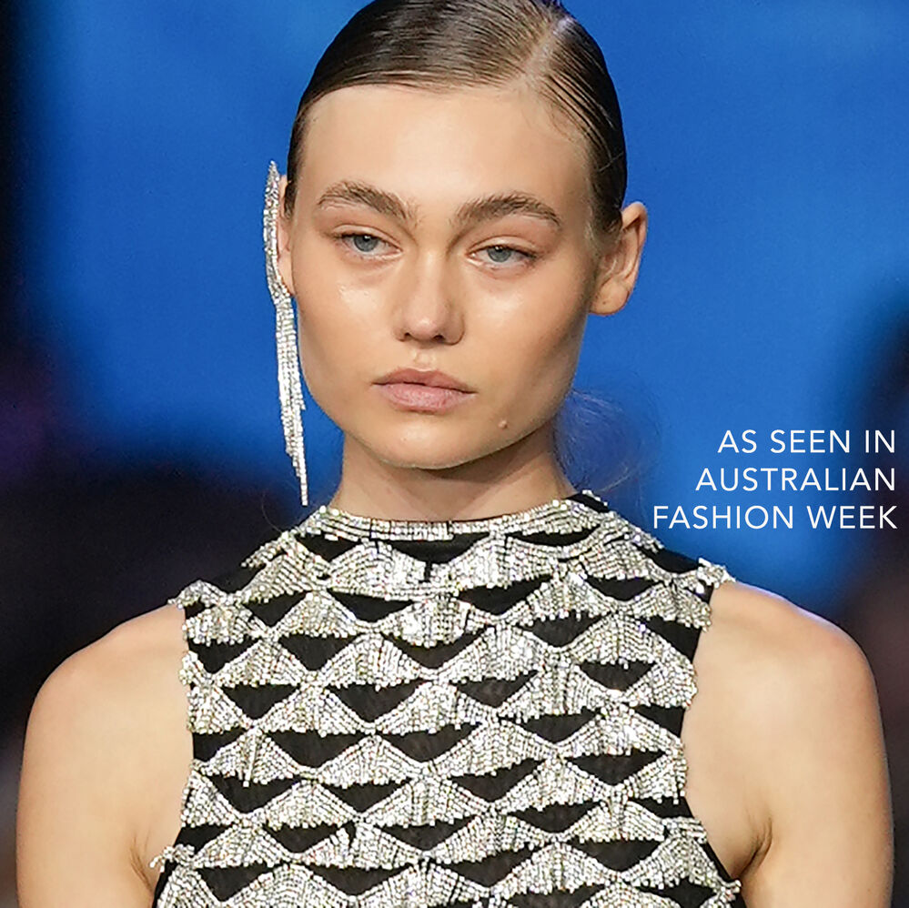 Single yet splendid. Introducing Alouette Single Ear Contour Climber Earring - an eye-catching statement unapologetically showcases your fashion attitude. This design features a single ear contour piece that climbs the whole length of the right ear with a gorgeous dangle of tassels. The earring comes with a piercing post and a clip-on which stabilises the climber on your helix. The earrings are crafted in environmentally friendly brass fully embellished with pave cubic zirconia, and plated in silver. A head-turning piece rings perfectly with the One Earring Trend as seen in Australian Fashion Week Designer Runway. Perfect for formal, semi-formal, runway, red carpet, celebrity styling, creative styling, high fashion events, smart casual styles and more. Hypoallergenic, nickel, cadmium and lead free.