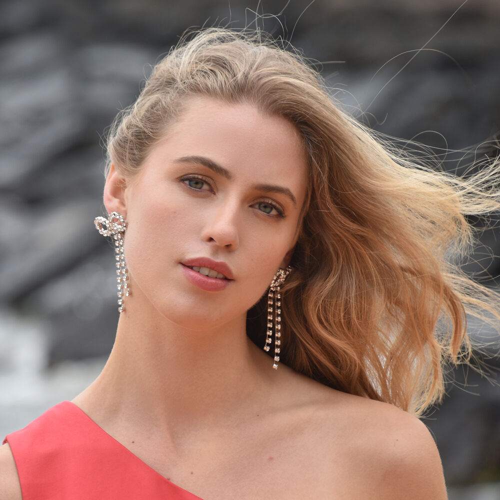 Shimmering status with a girly dangle, introducing We Dream Earrings - a most unique feminine statement with an ever-lasting glamour. This design is crafted in environmentally friendly stainless steel (nickel free) with crystal-encrusted diamantes, giving the earrings a gorgeous shimmer. This bold yet delicate design not only enhances your feminine beauty, but also brings a bubbly and fun vibe to your up-styling. Perfect for any dressy occasions and wait for others' 'OMG'. Available for both pierced and non-pierced ears.