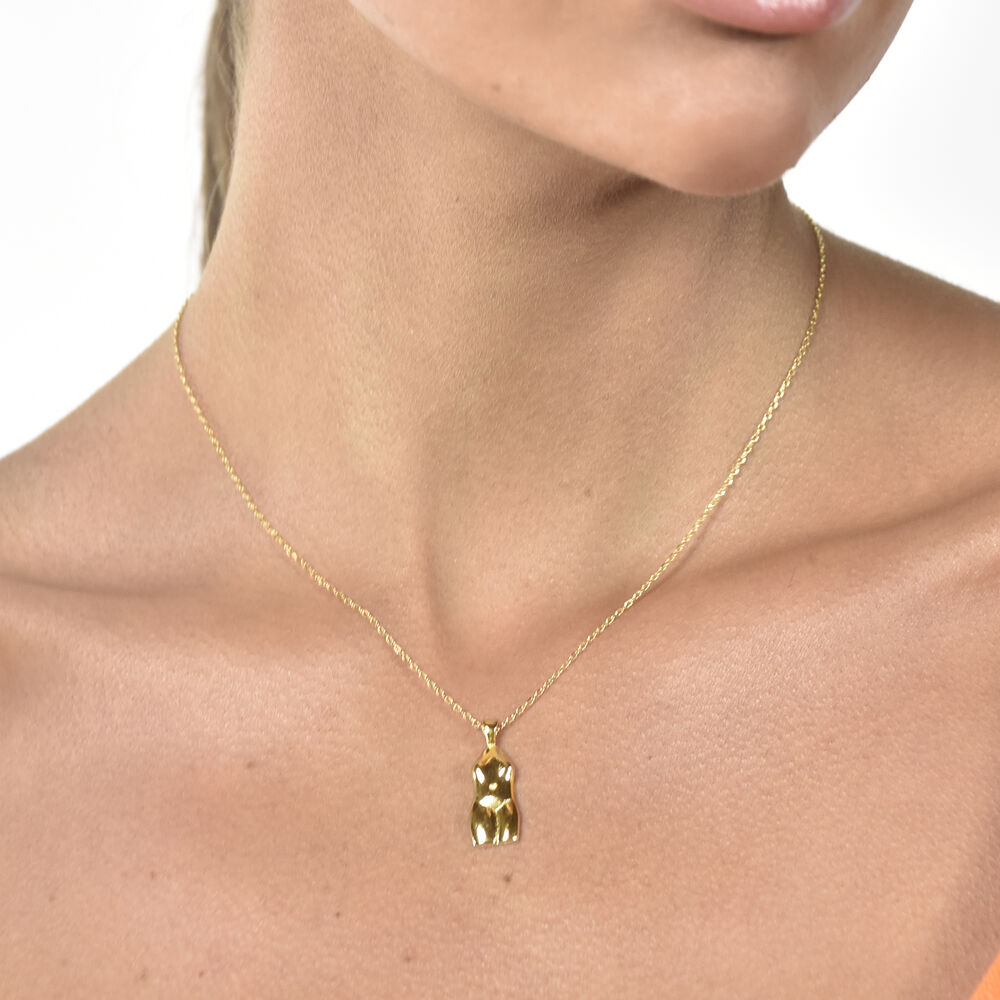 Love your body a little bit more each day. Introducing Eros Body Art Pendant Necklace (Gold) - an artsy style neckpiece inspired by body art and contemporary sculpturing. This design features an abstract female torso, smoothly polished with a reflective shine. This neckpiece is made in solid sterling silver with 2 microns of 18K gold plating for hypoallergenic wear and a soft gold shine. This neckpiece is 44cm long including a 3.5cm adjustable link for your ideal fit. An on-trend and unique piece that speaks of self love and creativity with a touch of art. Perfect for modern, chic, feminine, trendy, minimalist, necklace layering, smart casual,casual, everyday styles and more. Hypoallergenic, nickel, lead, and cadmium free.