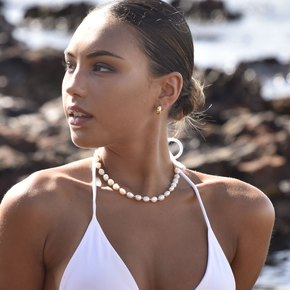 Classy pearl necklace combined with modern elements, introducing Ivana Freshwater Pearl Necklace - an ethically handmade pearl beauty featuring handpicked premium freshwater pearls ( with smooth surface and no imperfections ) and 18K gold plated beads, adjustable chain and clasp. No matter dress up or dress down, there is always a perfect fit for such a classic piece. Perfect for formal, semi-formal, coastal, chic, dressy, evening, casual and everyday wear. 100% nickel, cadmium and lead free.