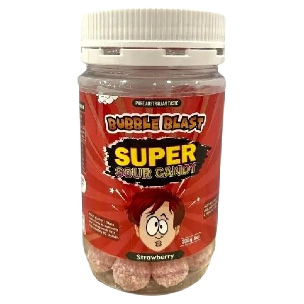 Bubble Blast Super Sour Strawberry Candy 200g Australian Made Tangy Sweets