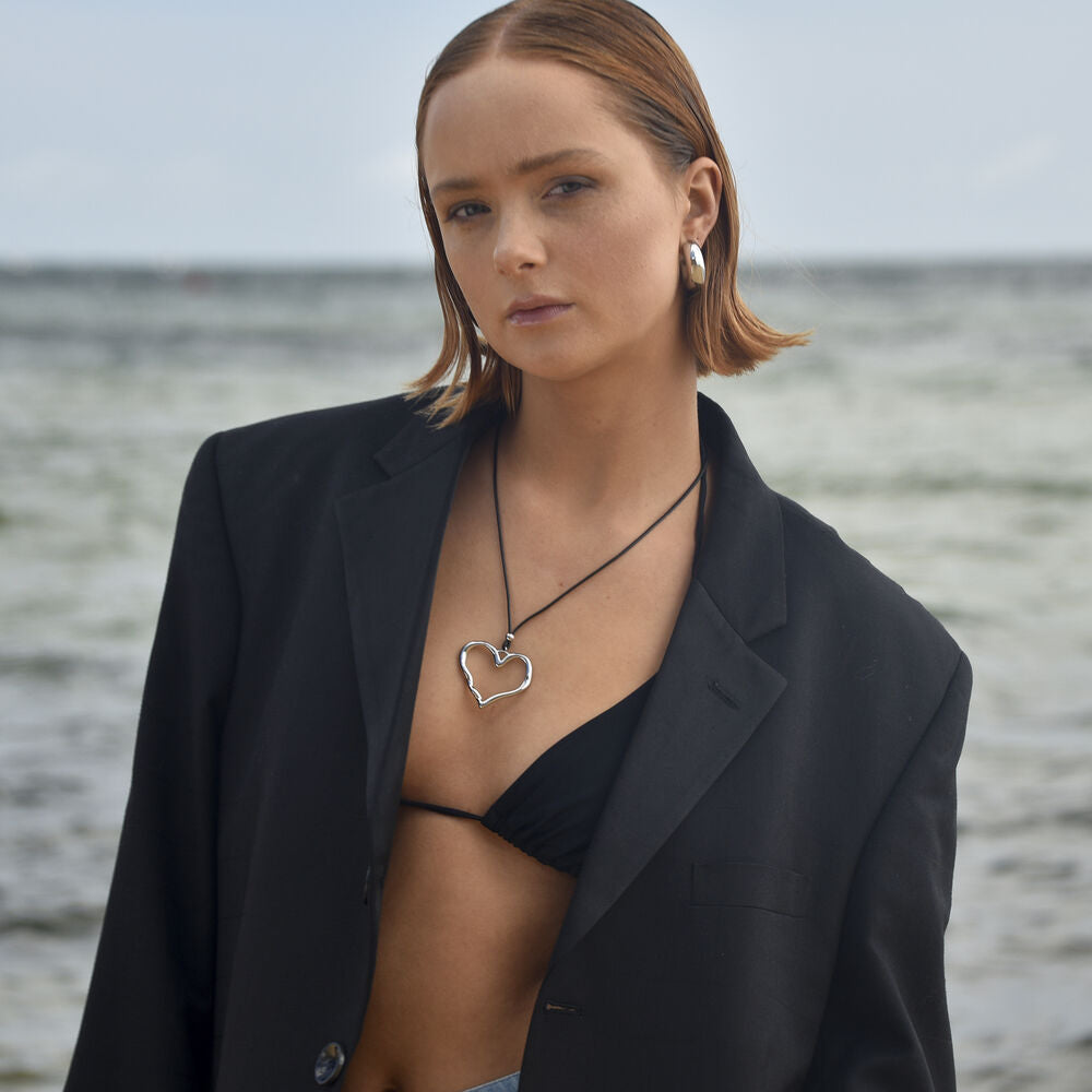 A statement that doesnt compete. It just is. Introducing Mason Sculptured Heart Pendant Necklace (Silver) - a contemporary art inspired pendant piece for the modernists. This design features a sculptured outline big heart pendant attached to black tieback strings. Tie the strings at the length you desire. The heart pendant is made in environmental friendly stainless steel. Wearing on its own or layering, it just cant be missed. Available in gold or silver.