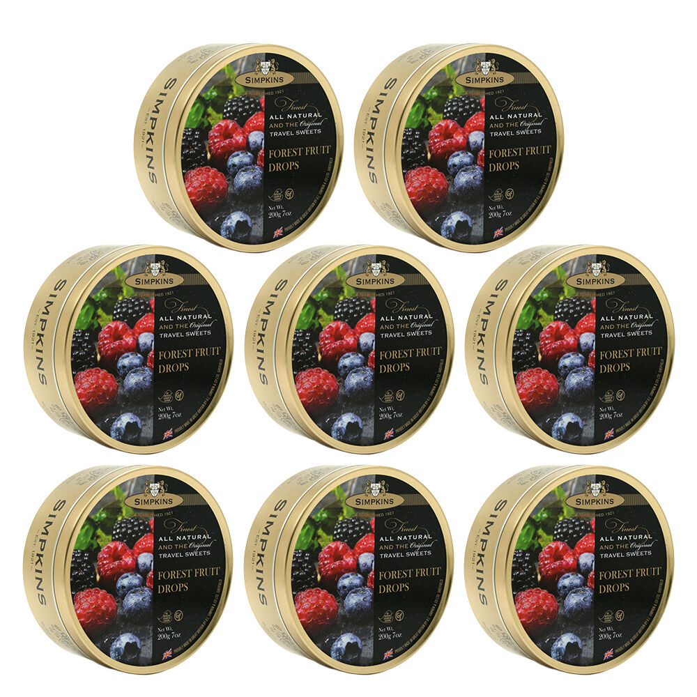 Simpkins Forest Fruit Drops 8 x 200g Tins Traditional British Berry Travel Sweets