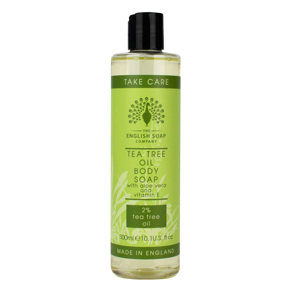 Cleanse and refresh your skin with the Tea Tree Oil Body Wash from the Take Care Collection by The English Soap Company. Crafted in the UK by an award winning family business this 300ml body wash contains 2 percent aromatherapy grade tea tree oil known for its natural antibacterial and antifungal properties. It gently supports relief from acne eczema psoriasis and oily skin while promoting overall skin clarity.