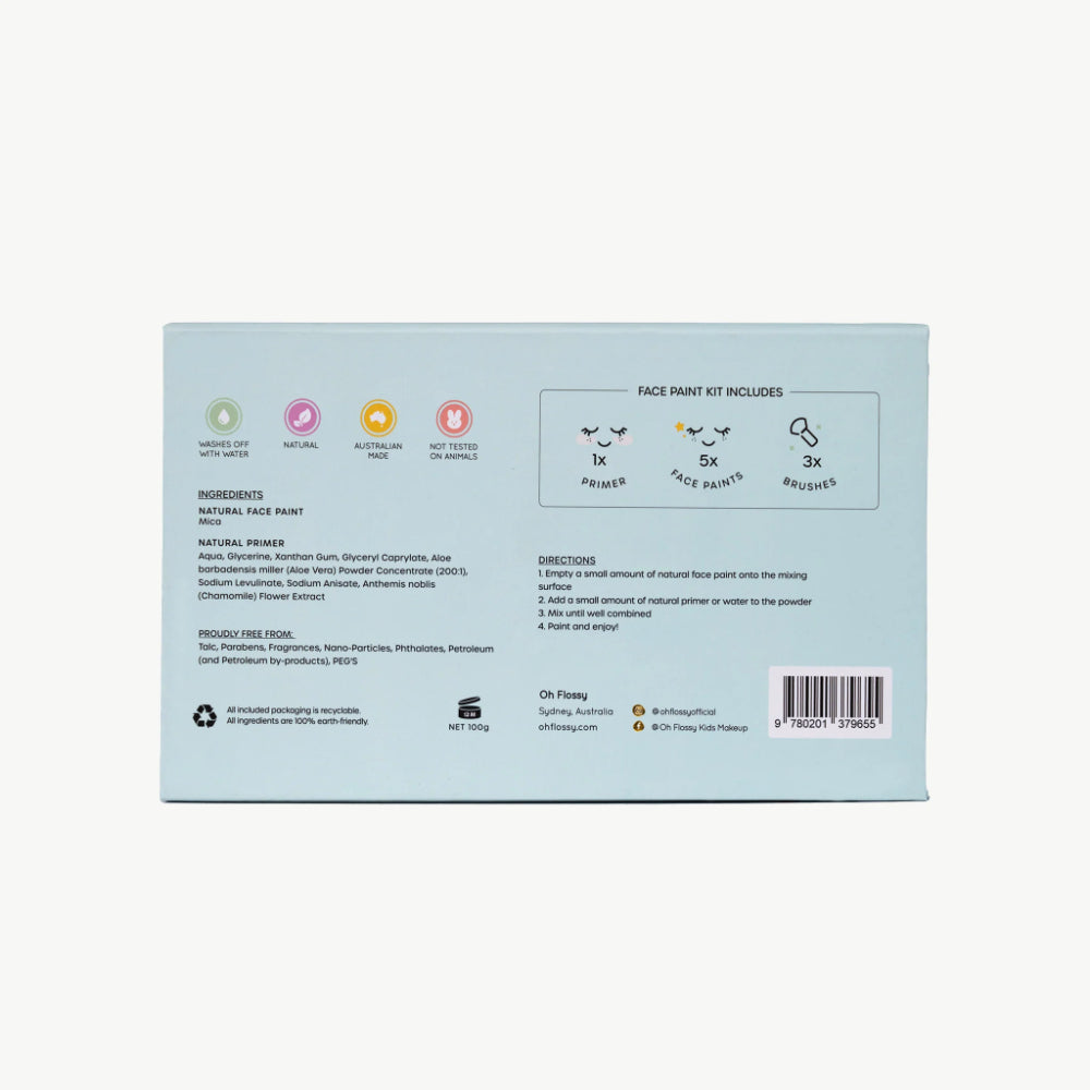 This Natural Face Paint Set for children is full of bold vibrant colours which will create endless fun and creative experiences. This set is perfect for your wild one who love to create vibrant animal looks, inspiring endless hours of imaginative play. The range contains no fillers and no preservatives - just pure colour which is made for kids' sensitive skin. Use with water or our Natural Glue Primer (included) for safe, all day natural face paint that won't crack or peel. A little goes a long way so don't underestimate this small pot of fun!