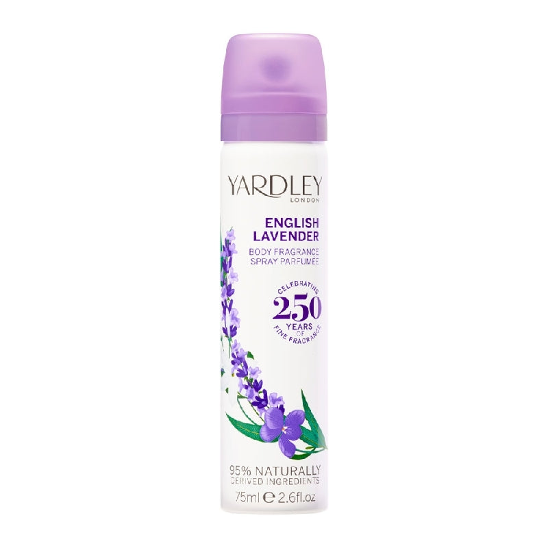Yardley English Lavender Deodorising Body Spray Women 75ml Features A beautifully fresh, clean elegant fragrance combining bergamot and clary sage with a heart Combining English Lavender, eucalyptus, geranium, jasmine, chamomile and violet, enhanced with deeper, warm notes of wood, vanilla and patchouli Natural extracts providing a light, refreshing,...