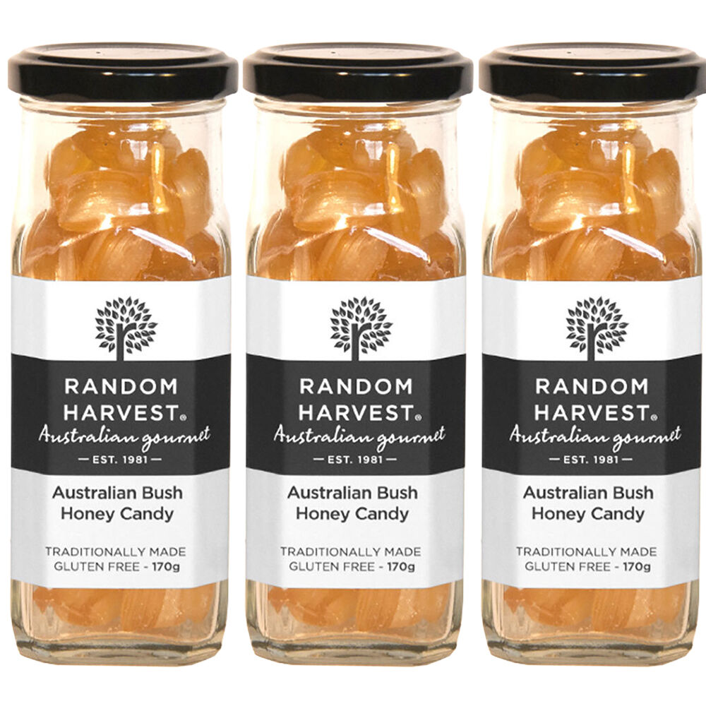 Random Harvest Australian Bush Honey Candy 3 Pack 170g Glass Jar Lollies