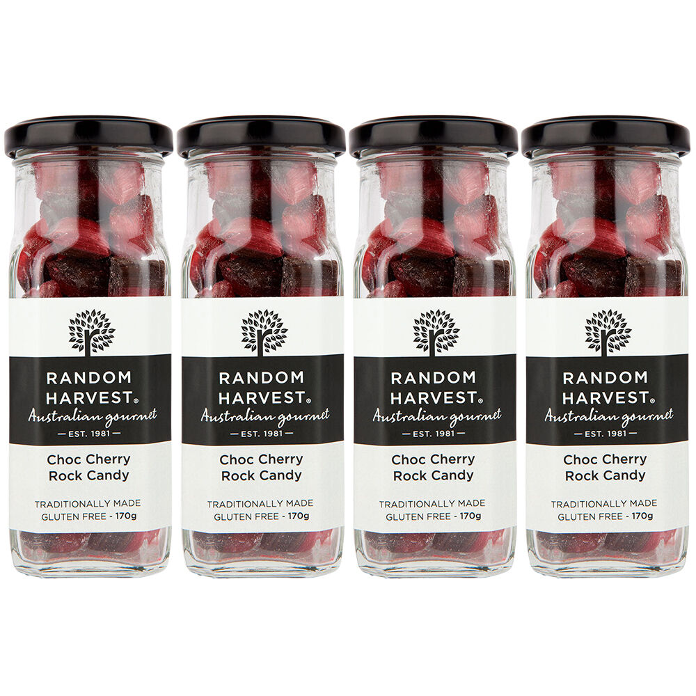 4 x Random Harvest Choc Cherry Rock Candy Glass Jar 170g each