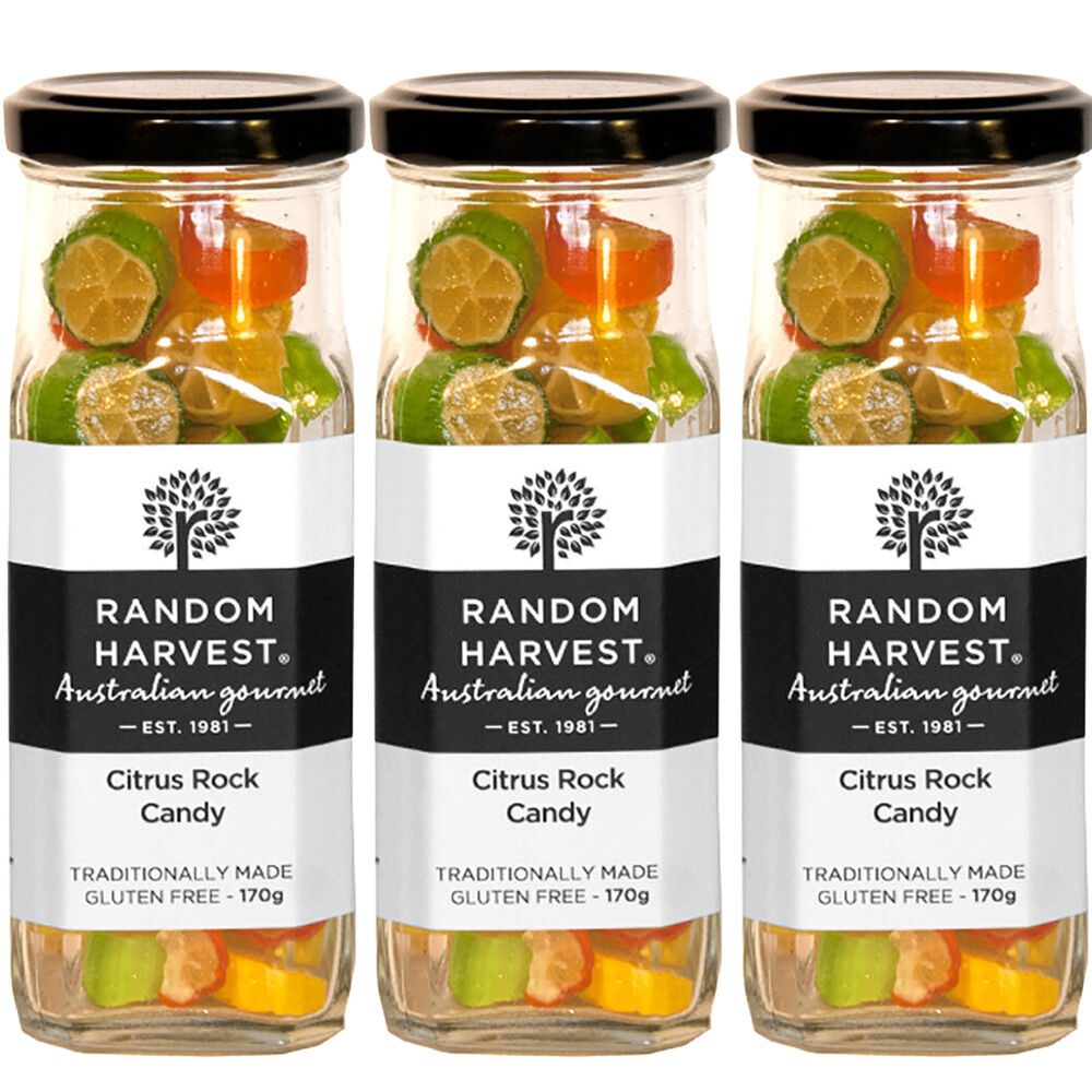 Random Harvest Citrus Rock Candy 3 x 170g Glass Jars Gluten Free Vegan