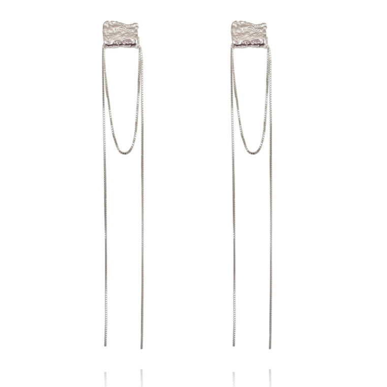 Contemporary, artsy and unique. Introducing Murphy Sculpture Wrap Tassel Earrings (Silver) - a sculpture inspired artisan ear art for lovers of uniqueness and style. This design features a folded sculptural plate with gold string tassels in a loop and drop fashion. The earrings are crafted in solid sterling silver with with brilliant white rhodium plating for a brighter silver shine and an extra anti-tarnish protection. They are of a comfortable weight for all day wearing. A piece that is of class, quality and style. Perfect for modern, artsy, minimalist, chic, earring layering, high fashion styling, smart causal, casual styles and more. Hypoallergenic, nickel, cadmium and lead free.