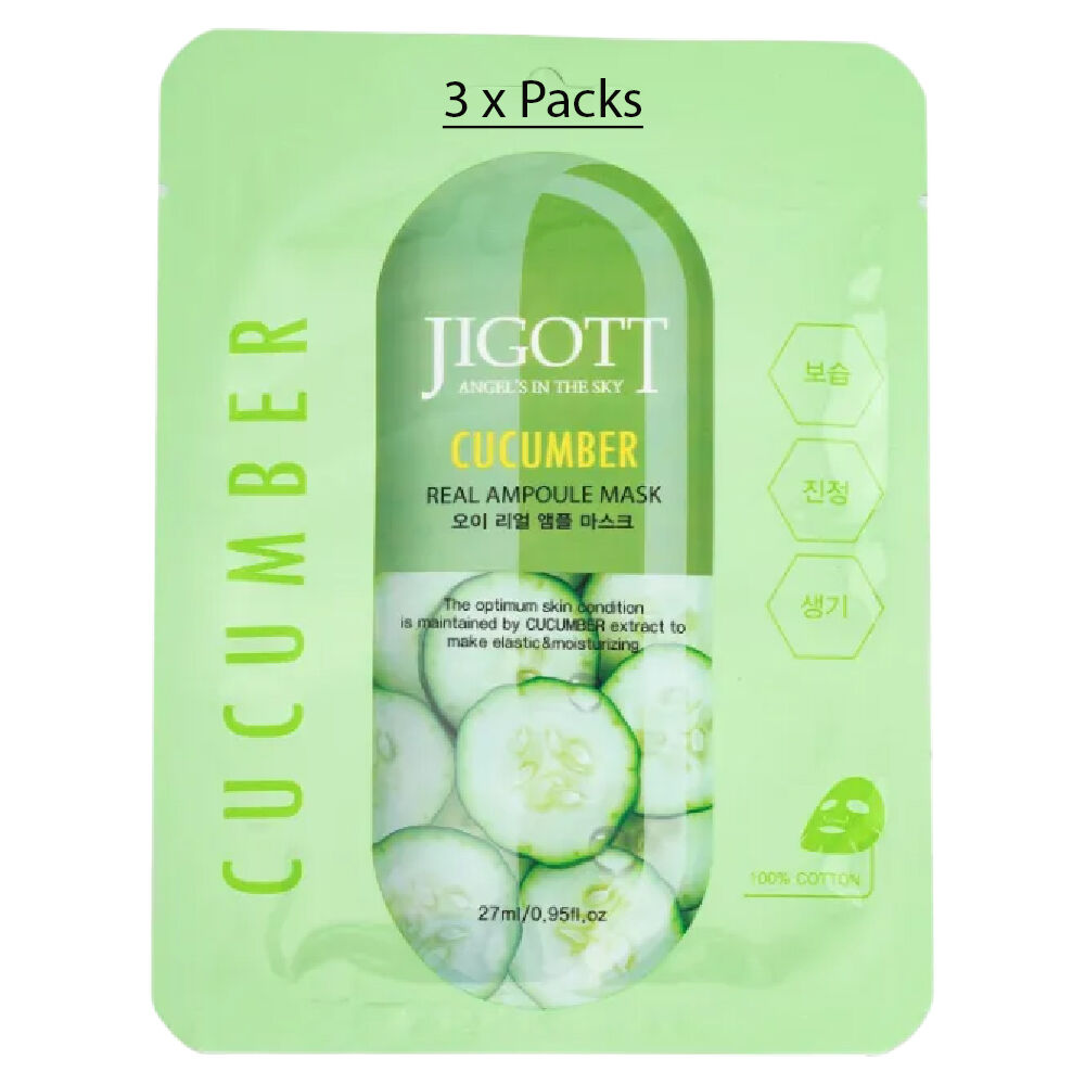 Buy now to experience the cooling and soothing benefits of Jigott Cucumber Ampoule Mask, your daily skincare solution for hydrated, refreshed and healthier looking skin.