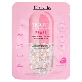 Jigott Pearl Extract Ampoule Sheet Mask 27ml Korean Cotton Face Mask x 12
