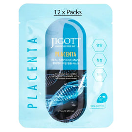 Jigott Plant Placenta Extract Ampoule Sheet Mask 27ml Korean Cotton Face Mask x 12