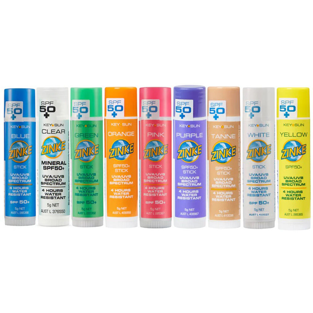 Be ready for every outdoor event with the ZINKE SPF 50 Plus Zinc Stick 5g Full Colour Range Bundle. Featuring the complete colour collection, this set delivers very high broad spectrum UVA and UVB protection in fun, vibrant shades plus a clear mineral option for invisible coverage.