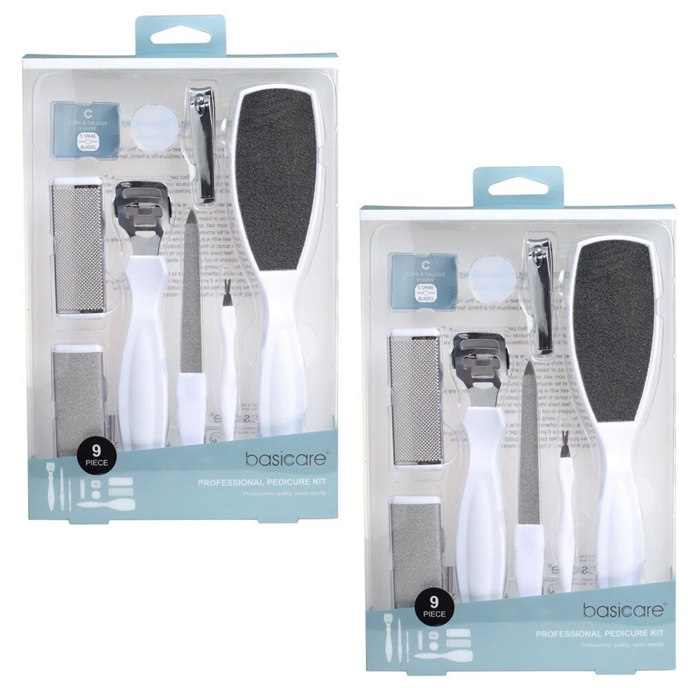 Elevate your foot care routine with Two Basicare Professional 9 Piece Pedicure Kits. This twin pack offers a complete home grooming solution with professional quality tools and convenient storage for travel or home use.