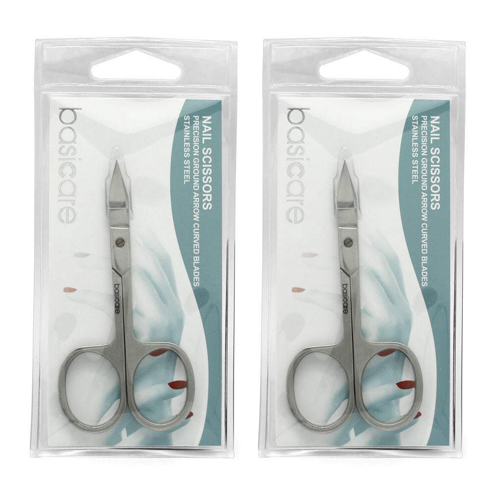 2 x Basicare Stainless Steel Precision Ground Arrow Curved Blade Nail Scissors