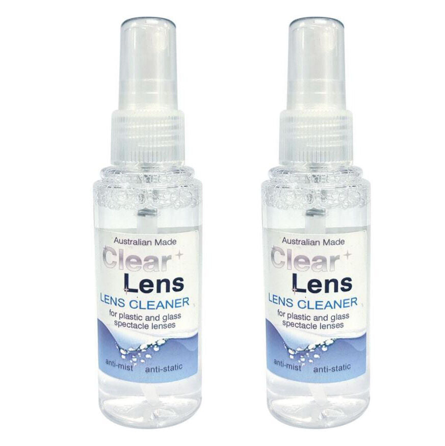 Clear Lens Cleaner Solution for plastic and glass eyewear in a value pack of 2 x 60ml spray bottles. This formula offers anti mist and anti static protection to keep lenses clear and comfortable to use.
