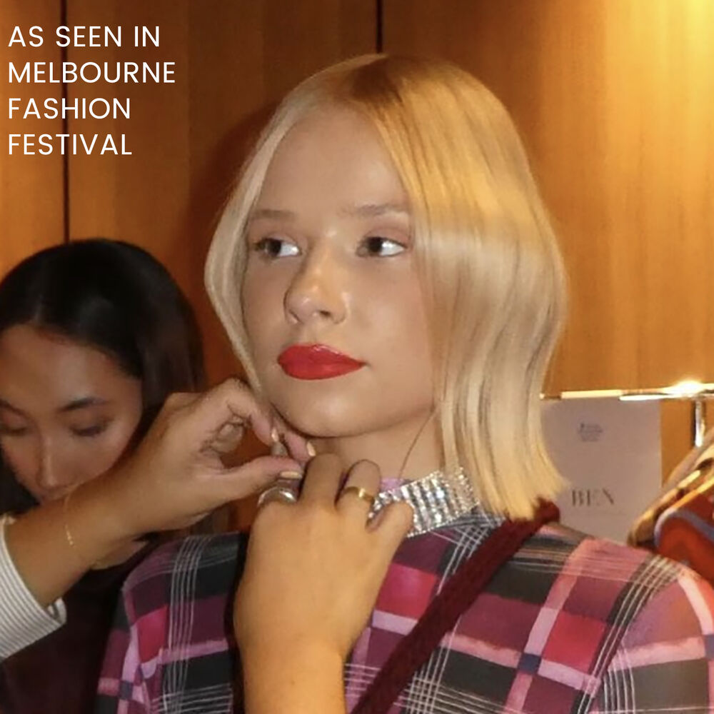 This necklace is 52cm long. Please kindly note that the position of the necklace sitting on your chest can vary from individual to individual depending on your top size. Model is a size 10.