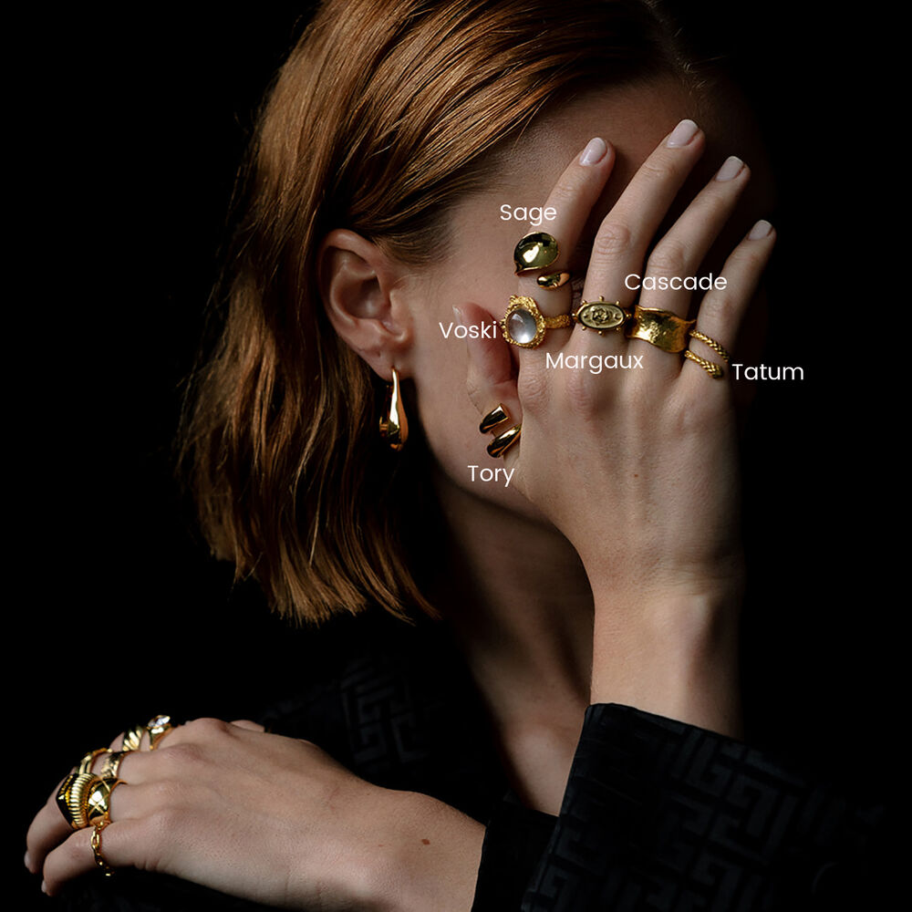Modernism infused with rawness. Introducing Cascade Gold Vermeil Textured Open Ring an artisan crafted gold vermeil finger beauty for those who appreciate quality, authenticity and textures. This design is inspired by the elements of Earth and Metal with a highlight of natural textures and a flared edge. It is crafted in solid sterling silver with 2.5 microns of 18K yellow gold (to Gold Vermeil Jewellery standard), giving the piece a warm, rich and luxurious gold shine that is tarnish restraint. This ring is fully resizable (with a default diameter of 22mm) and adjustable manually (due to softness of solid sterling silver) so you can adjust for a perfect fit. An outspoken and enduring statement ring art that is perfect for artsy, modern, creative, minimalist, Nordic, smart casual, casual and everyday wear. Hypoallergenic, nickel, cadmium and lead free.