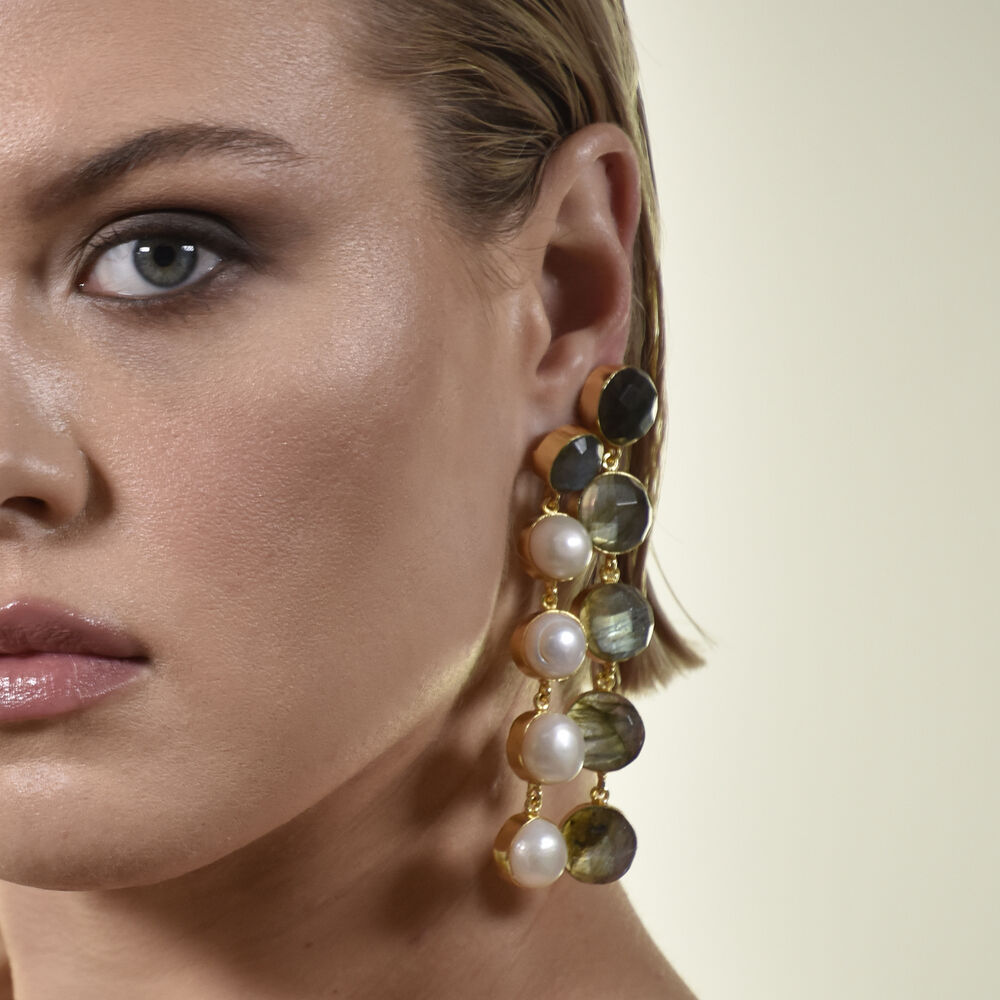 Culturesse Eleonora Labradorite Crystal Pearl Drop Earrings