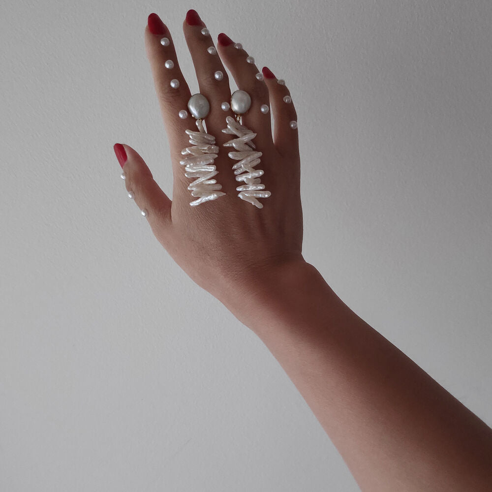 Handmade natural pearl drops with authentic beauty. Introducing Ellenora Artisan Freshwater Pearl Stack Earrings a handcrafted design for pearl lovers who appreciate unrefined rawness. This design features natural stick-shaped threaded freshwater pearls. The earring studs are made of hand-polished natural mother of pearls bedded in 18K gold plated brass (environmentally friendly nickel free). It is also of a comfortable weight (6.5g per earring) for wearing long hours. Perfect for coastal, modern, beach, summer, chic, feminine, bridal, formal, semi-formal, dressy, smart casual styles and more. Hypoallergenic, nickel, cadmium and lead free.
