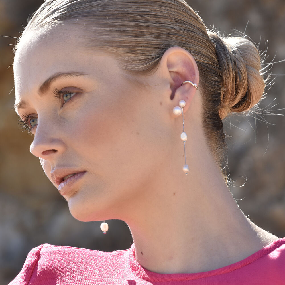 Simple, feminine with a subtle flow. Introducing Flo Ear Contour Cuff Earring Single Piece (Silver) - a creative and classy ear cuff for style and detail seekers. This design features a smoothly polished cuff with a subtle wave - adorned with a natural rice-shaped freshwater pearl. The earring is made in solid sterling silver for enduring and hypoallergenic wear. Perfect for modern, chic, artsy, minimalist, punk, earring layering, smart casual, casual, everyday styles and more. Hypoallergenic, nickel, cadmium and lead free.