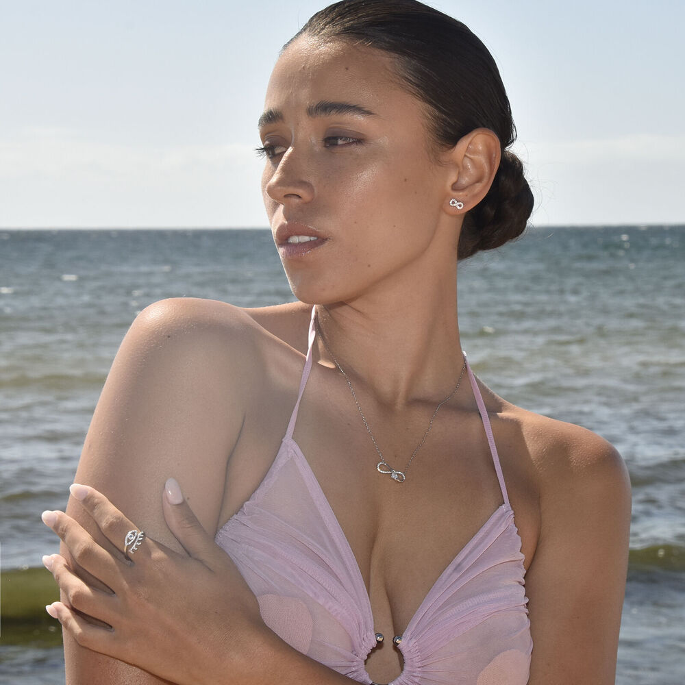 This Gift Set includes: Infinite Love Screwback Earrings (Silver) + Infinite Love Pendant Necklace (Silver)