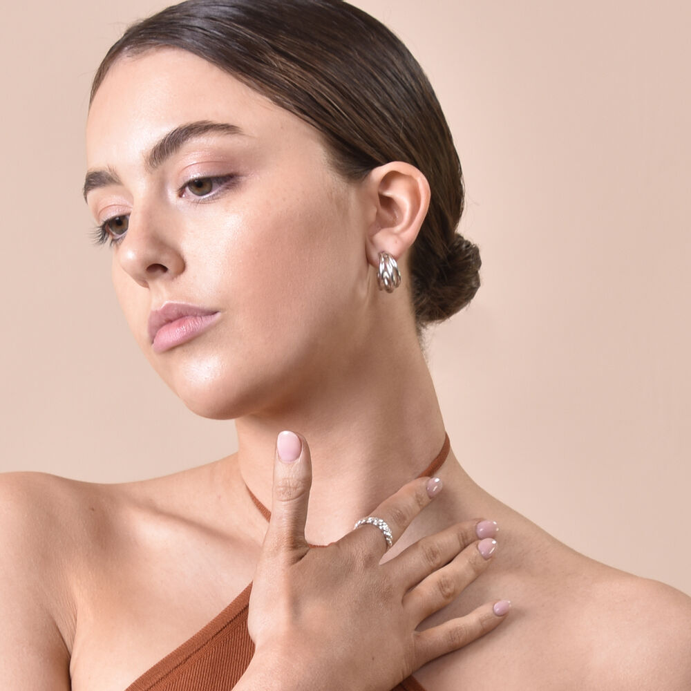 Contemporary, creative and super chic. Introducing Laure Artsy Curved Lining Earrings (Silver) - a modern artsy style ear love with simple and playful lines. This design features curved and joined hoops (3 lines) forming a 3D hug around your earlobe. The earrings are made of solid sterling silver for hypoallergenic and durable wear. They are of a comfortable weight for all day wearing. Perfect for modern, creative, chic, feminine, simple, smart casual, casual styles and more. Hypoallergenic, nickel, cadmium and lead free.