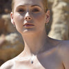 This necklace is 45cm long. Please kindly note that the position of the pendant necklace sitting on your chest can vary from individual to individual depending on your top size. Model is a size 8.