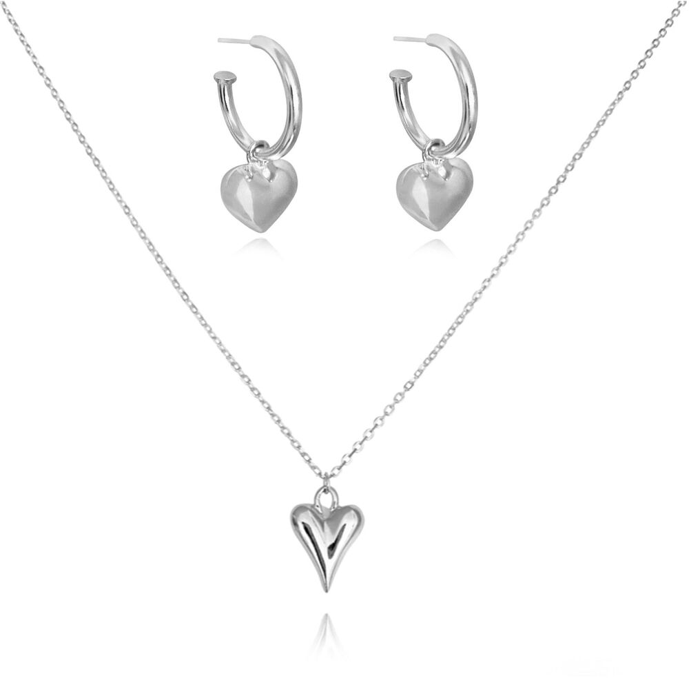 This Gift Set includes: Lavin Classic Love Heart Drop Earrings (Silver) + Lavinia Classic Love Heart Pendant Necklace (Silver)