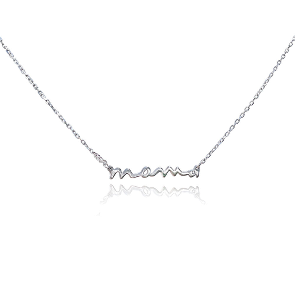 Delicate silver beauty with the power of love. Introducing Love You Mom Fine Silver Necklace - an everyday style fine neck love for all the beautiful mothers and more. This design features a joined writing text mom attached to a fine silver necklace. This neck piece is made of solid sterling silver. It is 46cm long including 5cm adjustable link for your best personal fit. Suitable for all personal styles, everyday wear and necklace layering. Hypoallergenic, nickel, cadmium and lead free.