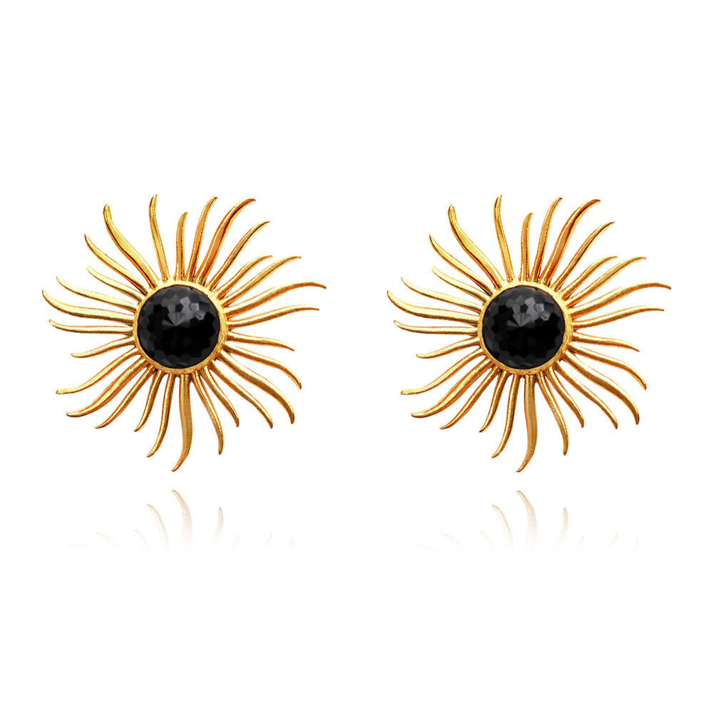 Be your own sunshine. Introducing Lumina Artisan 24K Onyx Sun Earrings - an artisan crafted piece with a highlight of natural black onyx gemstones. This design is inspired by Rupi Kaurs literature The Sun and Her Flowers and ethically crafted with love. The earrings are made of environmentally...