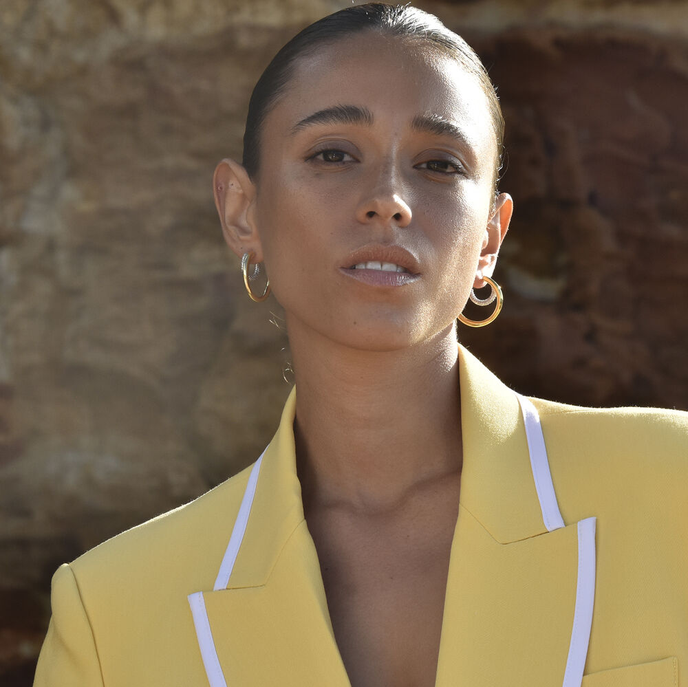 Culturesse Raya Bold Arc Resin Drop Earrings (Sunset Peach)