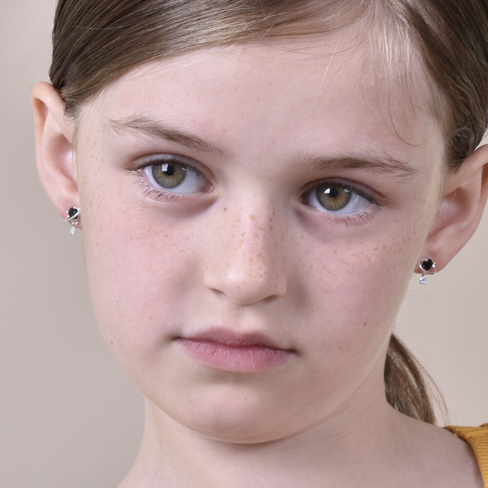 Culturesse dainty planet earrings made of solid sterling silver and black zircon. Free from nickel, cadmium and lead, 100% safe for little ears. Suitable for babies, children, newly pierced ears, and for adult dainty earring lovers.