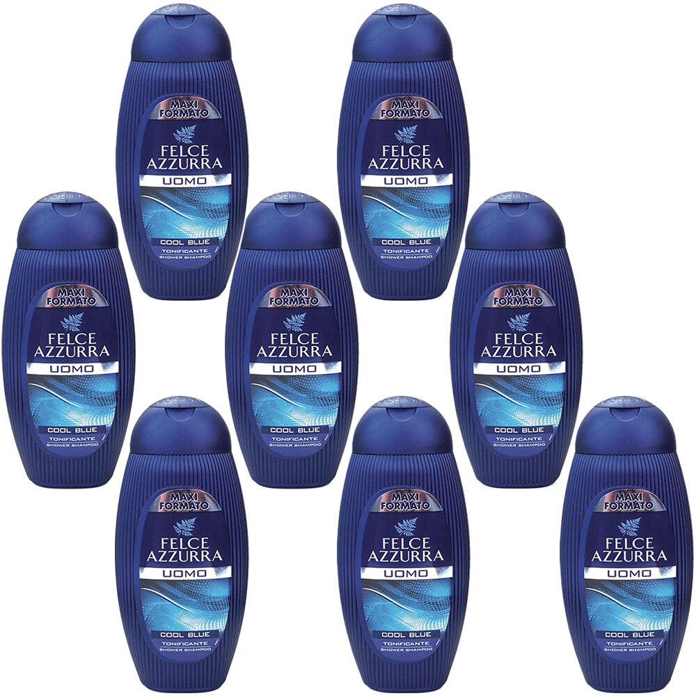 Contains 8 x Felce Azzurra Uomo Cool Blue Hair and Body Shampoo Wash 400ml for men