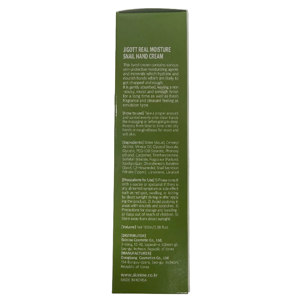 Restore softness and long lasting moisture with Jigott Real Moisture Snail Hand Cream 100ml a nourishing hand cream designed to hydrate repair and protect dry rough hands. Enriched with snail secretion filtrate this formula supports skin regeneration while delivering deep hydration for smoother healthier looking skin.