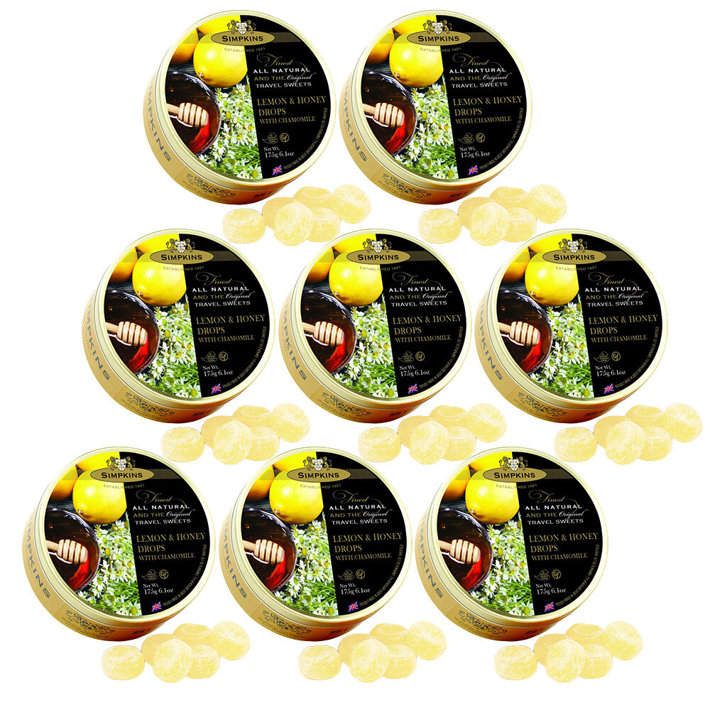 Simpkins Lemon Honey Chamomile Drops 8 x 200g Tins Natural Soothing Travel Sweets